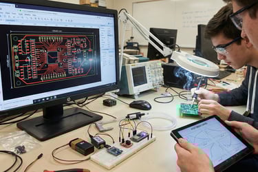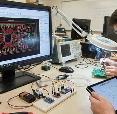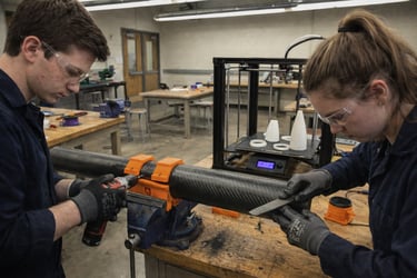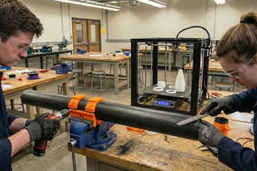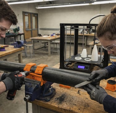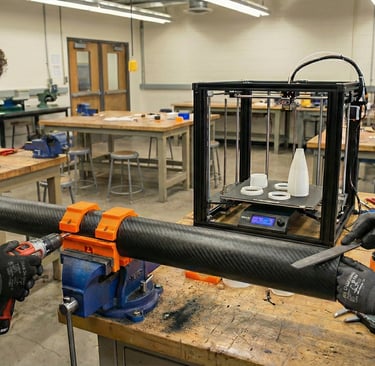 4) Manufacturing: carbon machining, PLA/3D printing, molds, and PCB assembly - in process