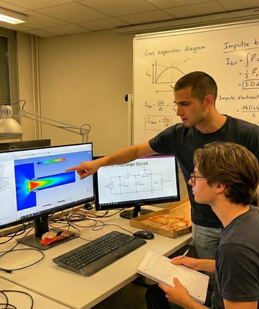 We aim to deliver a fully documented, experimentally validated plasma-propulsion demonstrator, and showcase ENSAM’s aerospace research capabilities on the national stage. The project positions our team within a field that carries major potential for the future of space mobility, offering a modest yet inventive contribution to ongoing advances in pulsed and micro-propulsion technologies. Beyond the technical results, we want to demystify experimental plasma physics for students, proving that with ingenuity and limited resources, it is possible to design, build and test a real thruster and engage directly with the scientific process.